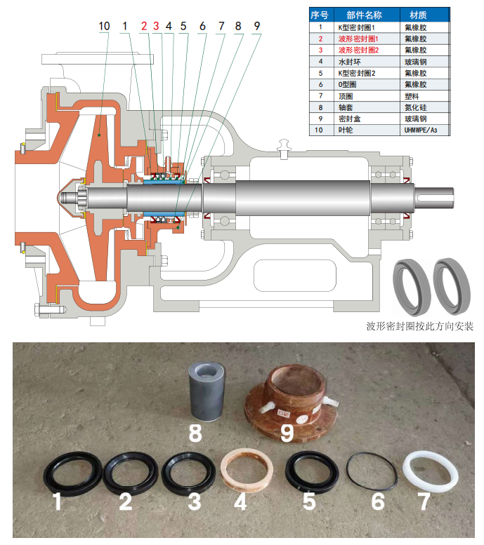 但是跟據(jù)長(zhǎng)期的使用經(jīng)驗(yàn)發(fā)現(xiàn),當(dāng)物料有沉淀、或泵使用一定的周期后密封和軸套的面由于磨損而變松,此時(shí)極易產(chǎn)生泄漏。在此問(wèn)題上,宙斯泵業(yè)經(jīng)過(guò)研究改良出一種能延長(zhǎng)使用壽命的密封,并申報(bào)了專(zhuān)利,以上安裝圖供裝配時(shí)參考使用。經(jīng)過(guò)一年多來(lái)在上百家客戶(hù)中的試用發(fā)現(xiàn),更換兩只波形密封圈后的動(dòng)力密封,密封使用壽命可延長(zhǎng)50%以上,并且不需要增加零配件成本。