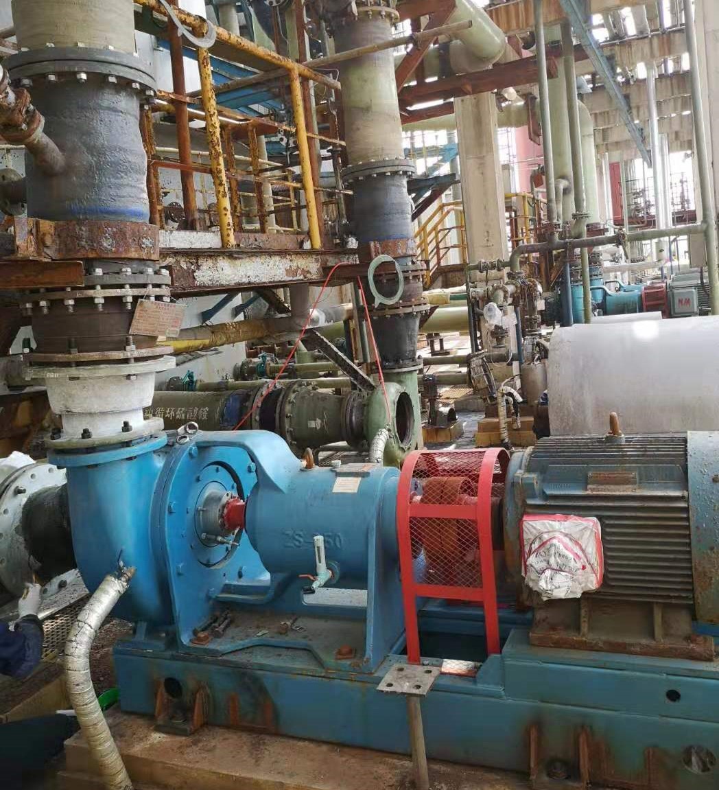 2019年,中鹽昆山對(duì)1期氨法脫硫項(xiàng)目改造中,因原脫硫總包公司采用某泵廠雙相鋼泵,在吸收循環(huán)和濃縮循環(huán)工段,雙相鋼泵運(yùn)行1個(gè)月后即發(fā)生葉輪、泵殼腐蝕穿孔,給業(yè)主造成重大損失,在技改中用宙斯高效脫硫泵替換了吸收循環(huán)工段的雙相鋼泵,型號(hào)為250UHB-ZK-500-24/75Kw-4四臺(tái)套,運(yùn)行1年業(yè)主反映情況很好。