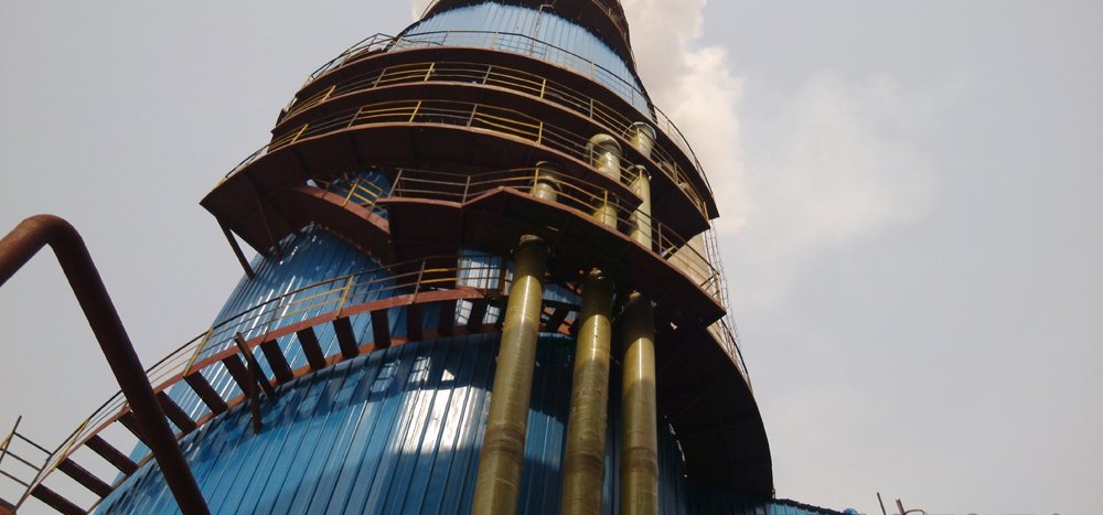 以下是相關(guān)工程案例圖片,供參考。圖示為某脫硫工程的脫硫塔,三支向上的玻璃鋼管分別為一、二、三層分別獨立的噴淋,噴嘴的循環(huán)水輸送管道,噴嘴由我公司提供RT系列陶瓷噴嘴。