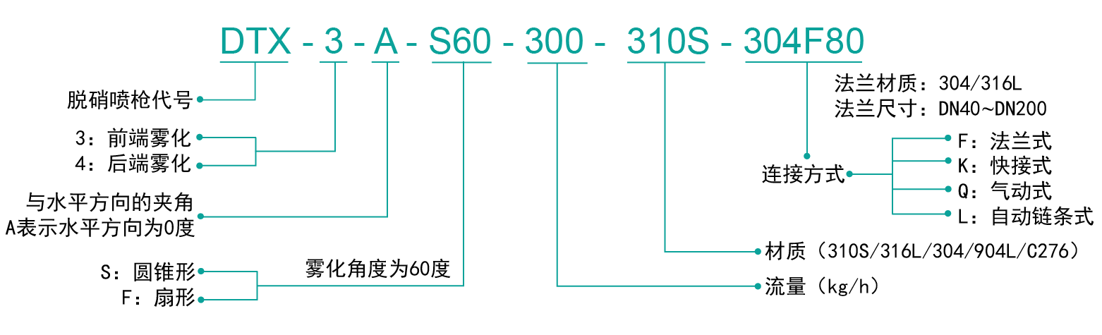 三、DTX系列鍋爐專用脫硝噴槍型號說明