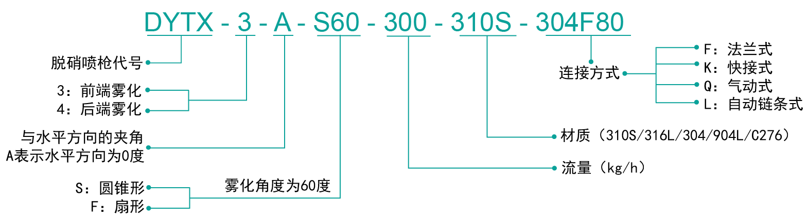 三、DYTX系列煙氣脫硫脫硝噴槍型號說明